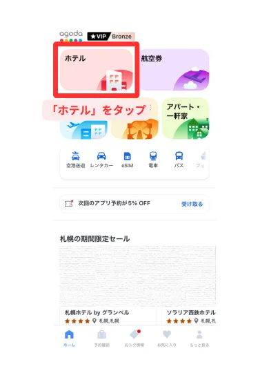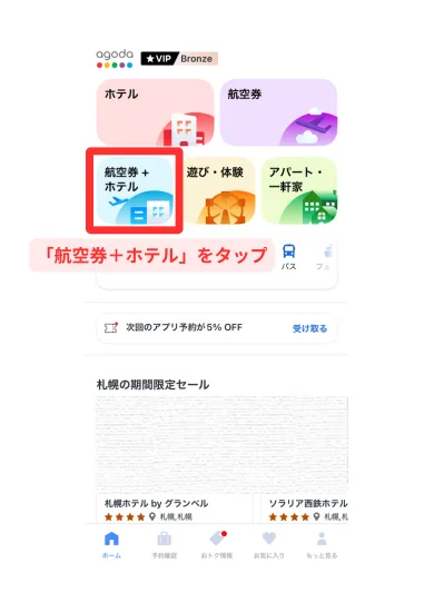 Agoda(アゴダ)の「航空券+ホテル」にアクセス