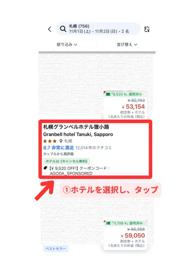 【航空券+ホテル】Agoda(アゴダ)で2人分予約する方法