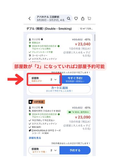 Agoda ( アゴダ ) で 2 部屋予約したい…。