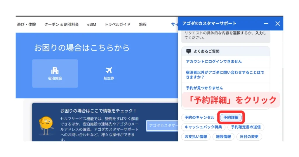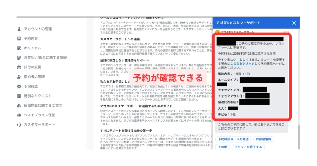それでも確認できないときはアゴダカスタマーサポートに問い合わせる