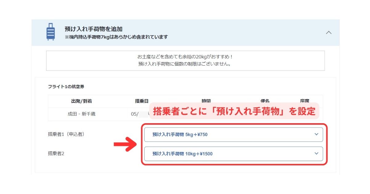 詳細は 預け手荷物の追加方法について をご覧ください。