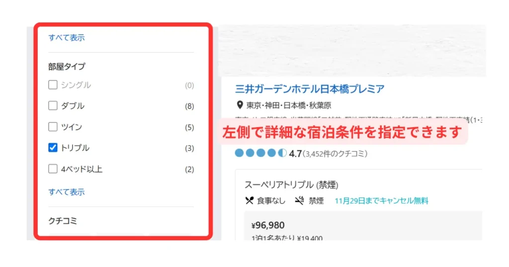 エアトリで二部屋予約するときに知っておきたいことは下記です。
