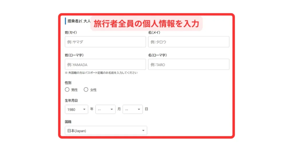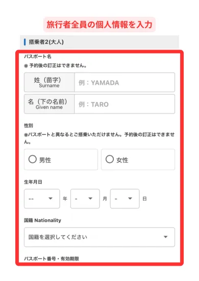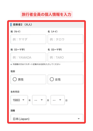 ホテル(プラン)を選択し、「宿泊者情報の入力」まで進みます。