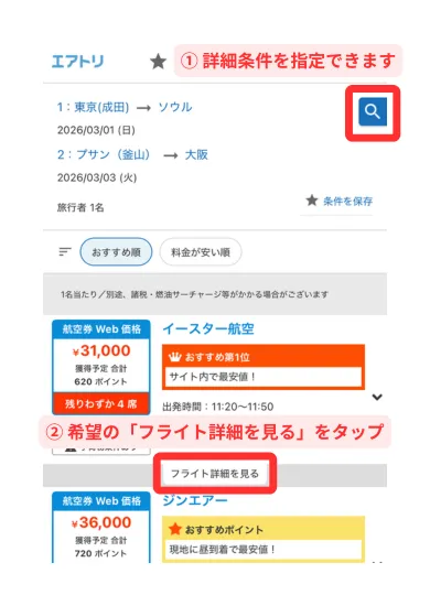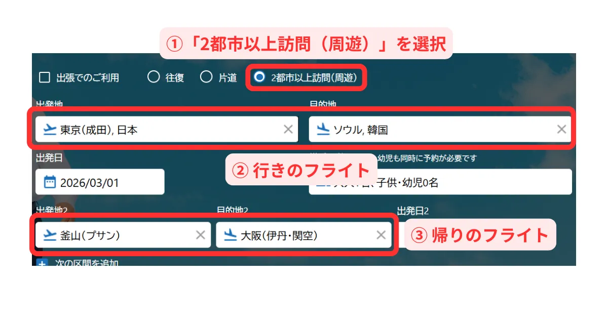 この記事では、 エアトリで行きと帰りを違う空港にする方法を紹介します。