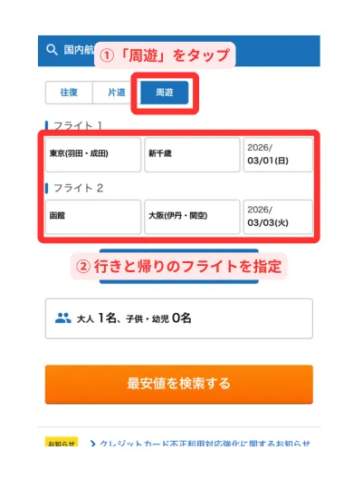 【国内航空券】エアトリで行き帰りを違う空港にする方法