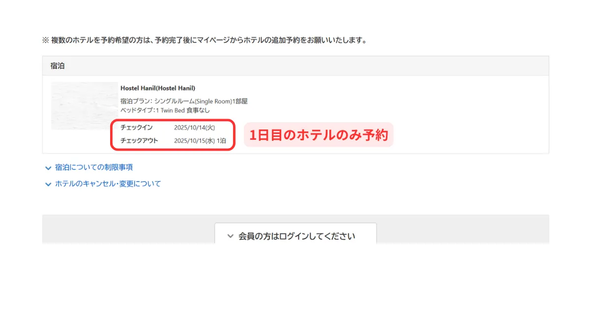 複数ホテルを予約するときの注意点はつぎの記事をご覧ください。