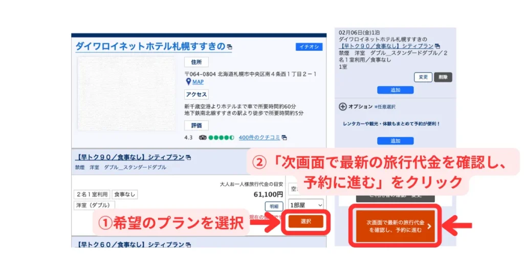 そのため、複数のホテルに滞在したい場合、航空券とホテルを別々に予約します。