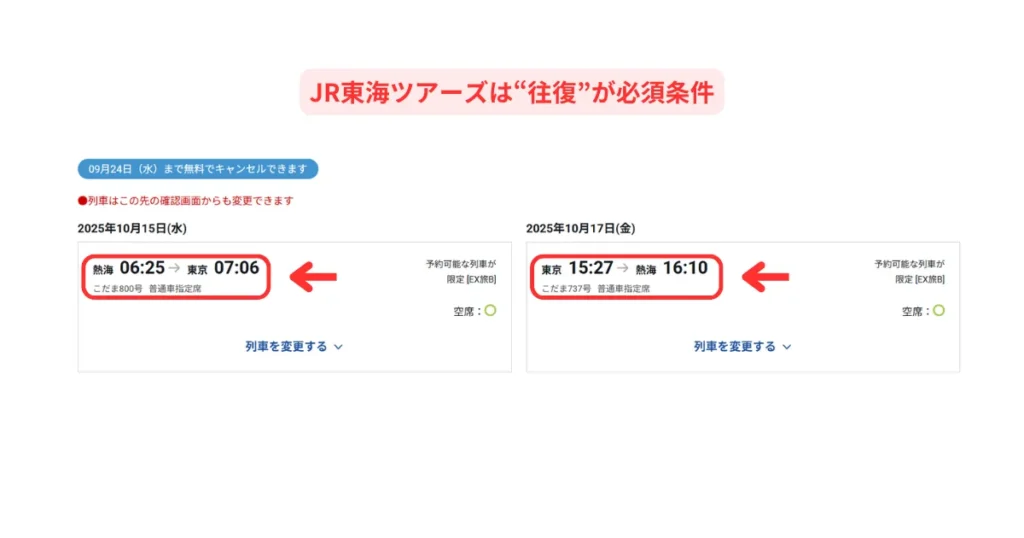 新幹線パックは “ 往復 ” が必須条件です。