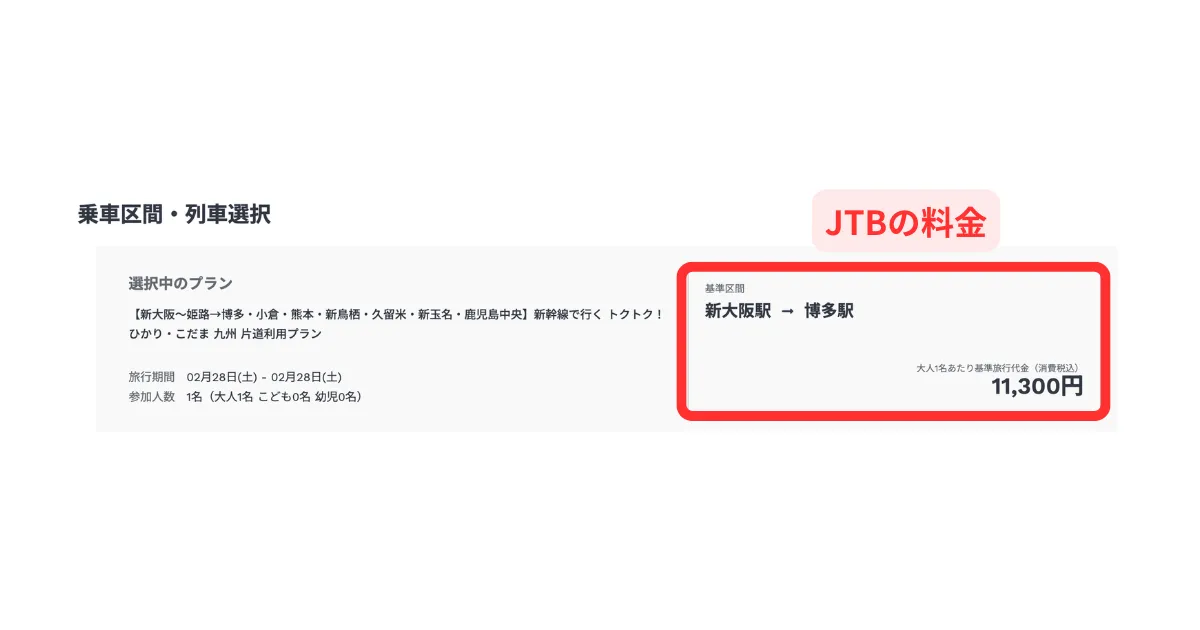 JTB と JR ( こだま・指定席 ) の新大阪から博多までの料金を比較します。