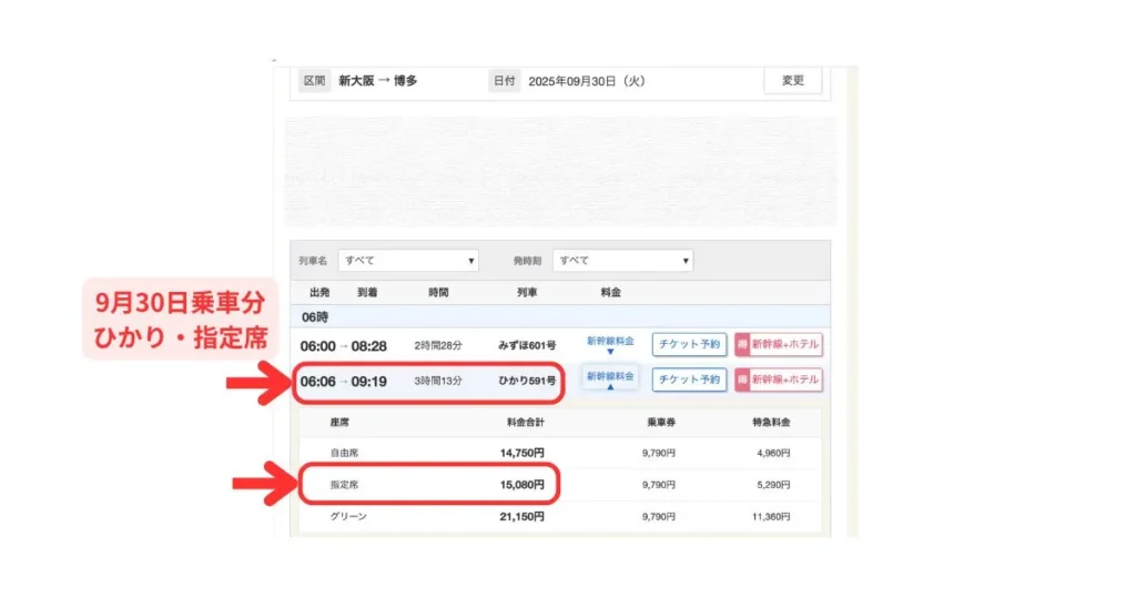 JTB と JR ( ひかり・指定席 ) の新大阪から博多までの料金を比較します。