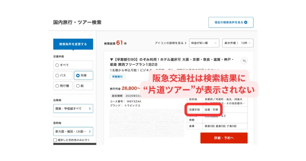 「新幹線片道のみ+ホテルパック」は存在しない