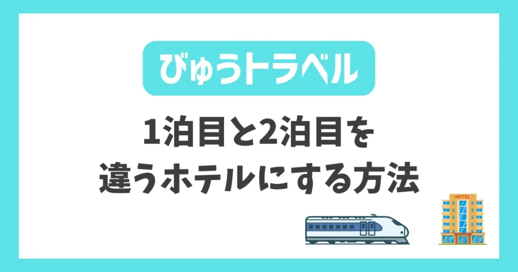 ----この記事は 2 分で読めます---- びゅうトラベルのダイナミックレールパックで 1 泊目と 2 泊目を違うホテルにしたい…。 やり方をくわしく教えて! 2日目は気分を変えて別のホテルにしたいですよね。 この記事では、びゅうトラベルのダイナミッ...