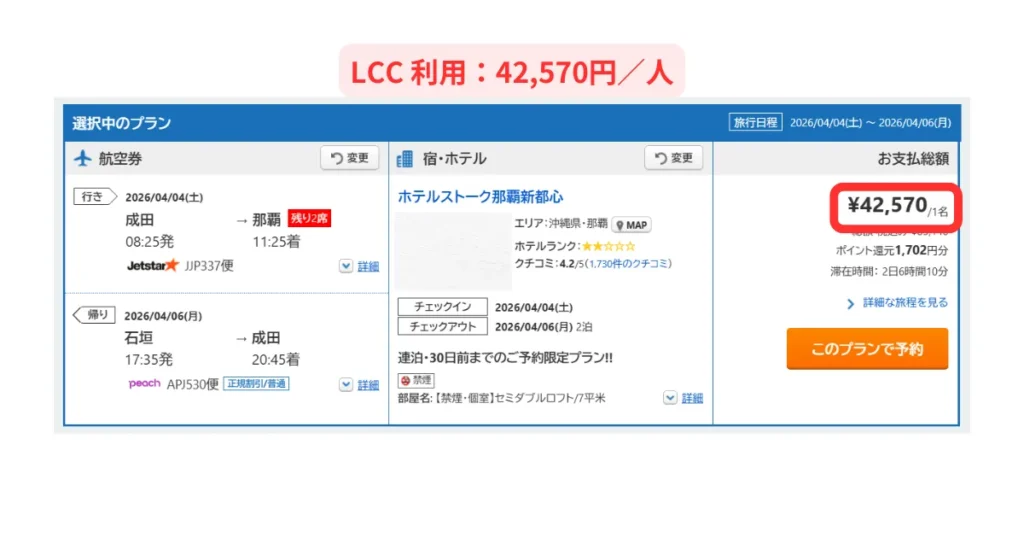- LCC に乗れるかで料金が大きく変わる