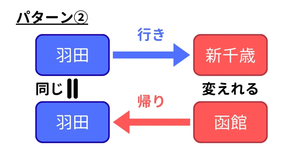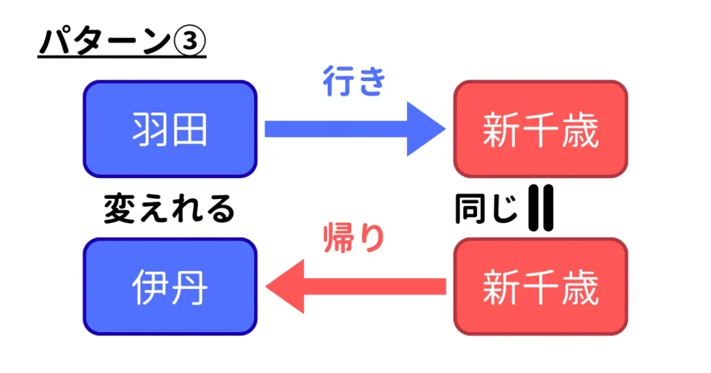 パターン③:出発地(行きの出発空港と帰りの到着空港)を違う空港にする