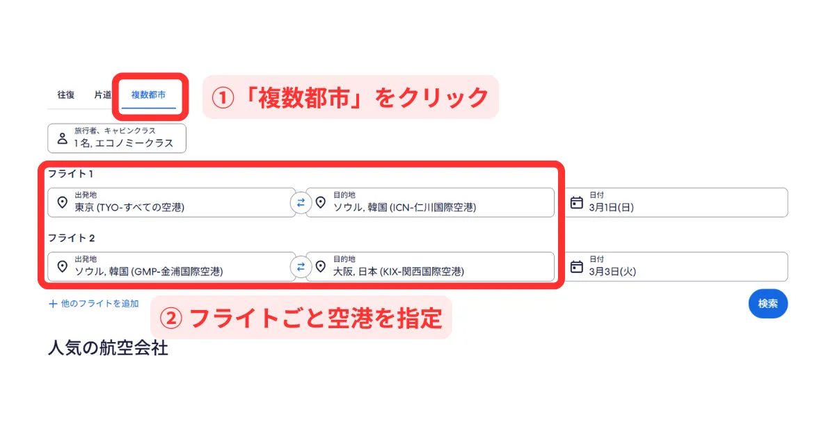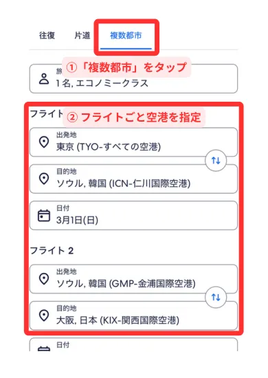 エクスペディアの航空券で往復を違う空港にする方法