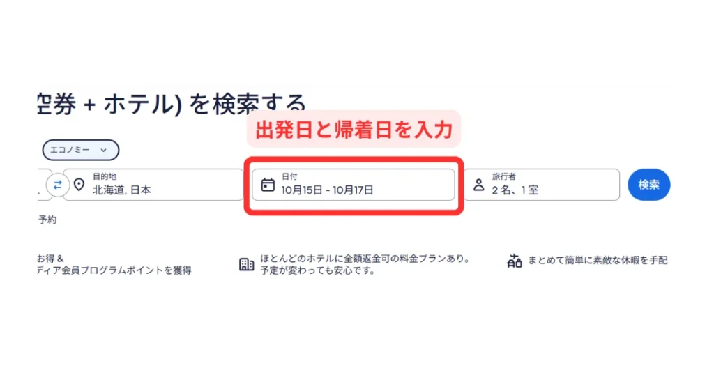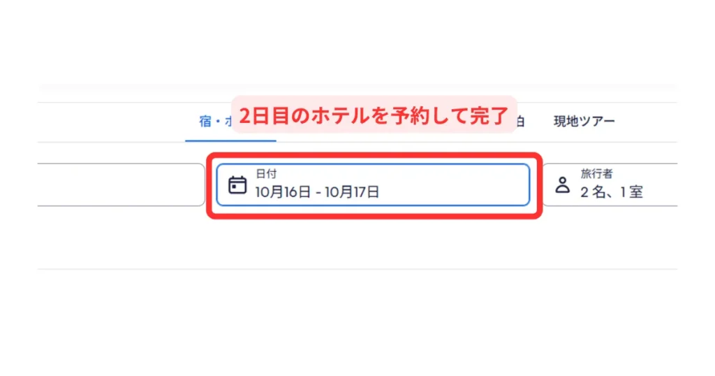 また、2 日目のホテルは帰りの空港までの移動距離を確認しながら予約しましょう。