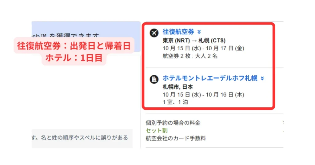 - 航空券パックは「1泊3日」+「1泊」=「2泊3日」にする