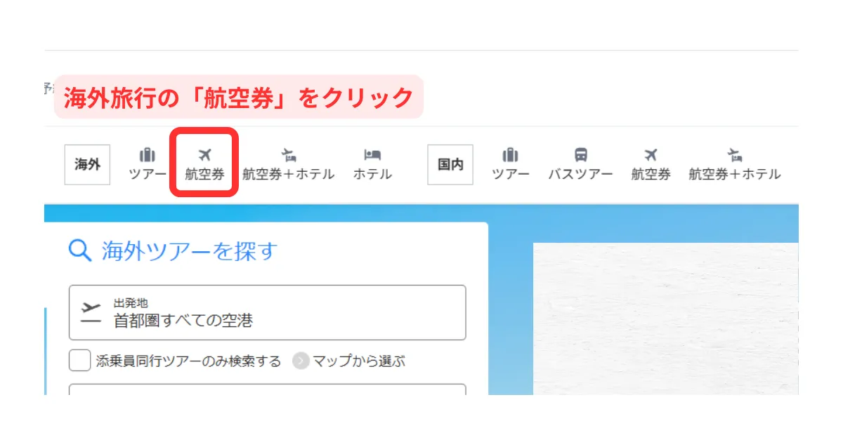 海外旅行の「航空券」をクリック