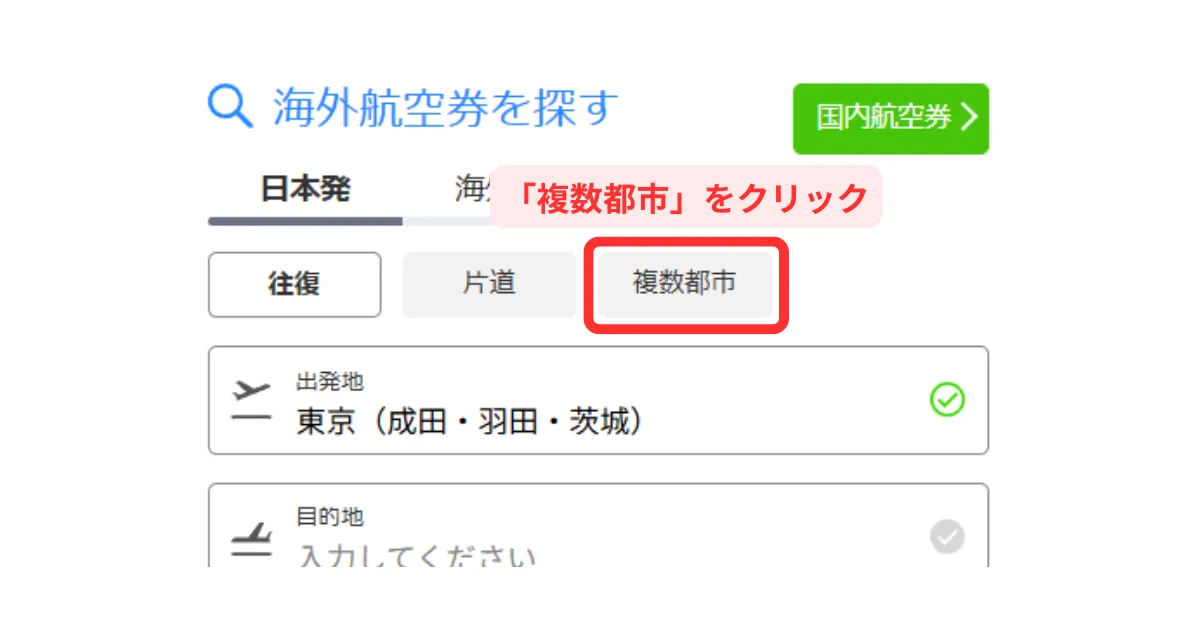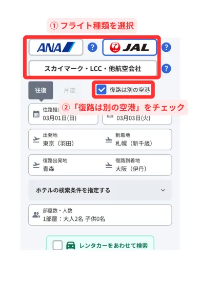 行きと帰りを違う空港にできます
