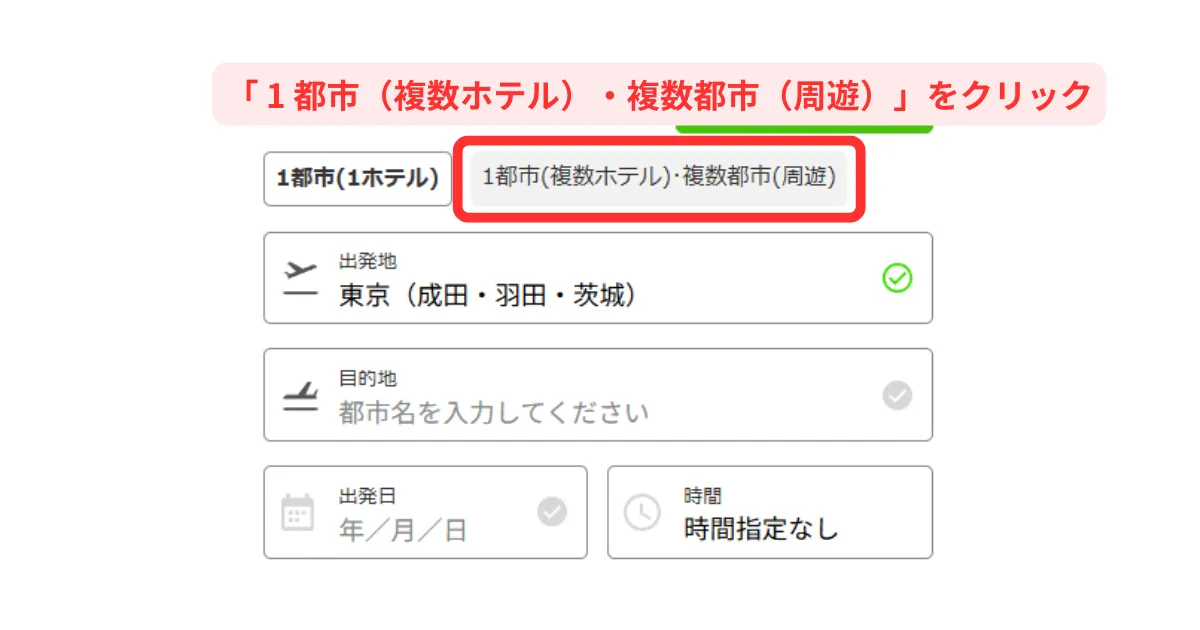 「 1 都市(複数ホテル)・複数都市(周遊)」をクリック