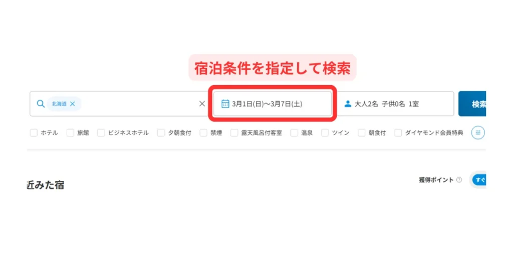 通常どおり宿泊期間を指定すればOKです。