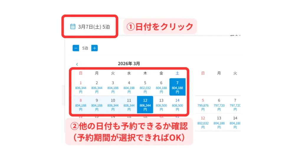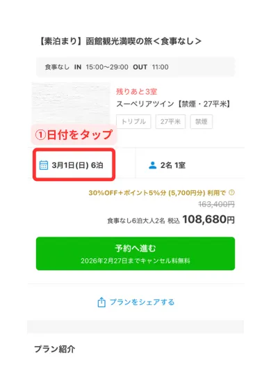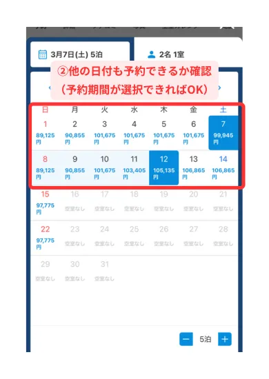 「 6泊+5泊 」の予約手順を紹介します。