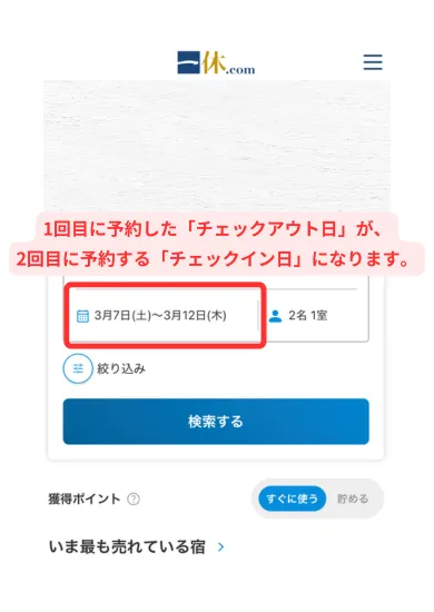 - 「6泊+5泊」のように複数回予約する