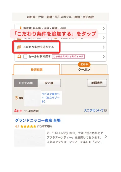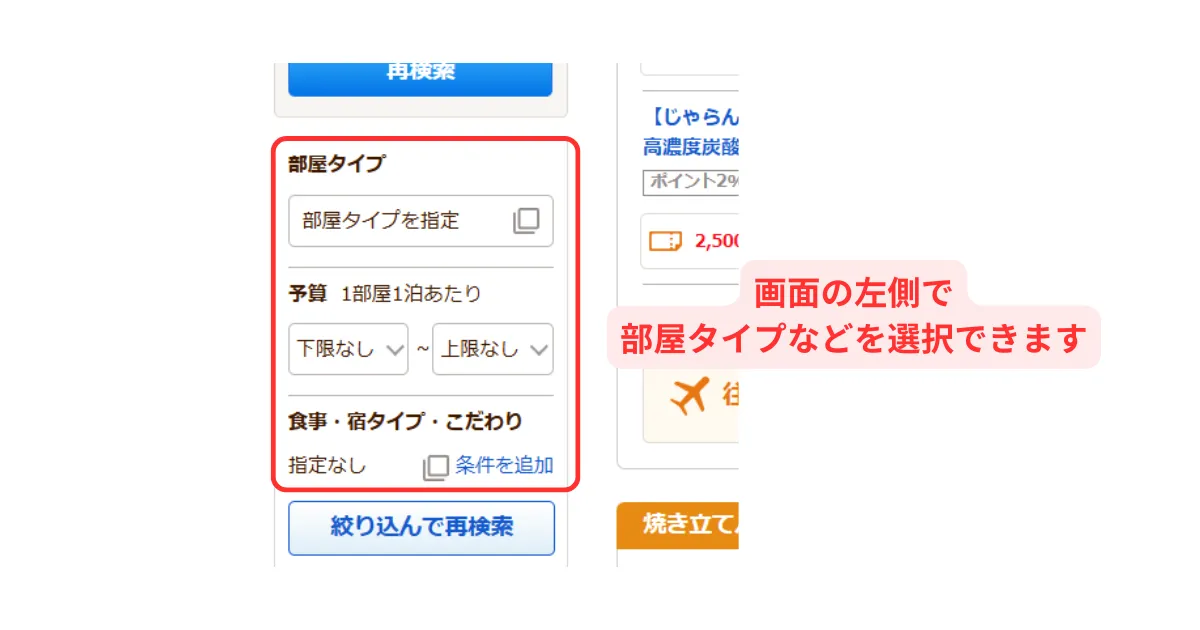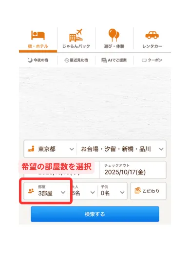 2 部屋を行き来できる「コネクティングルーム」はどうやって探せますか?