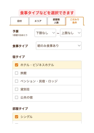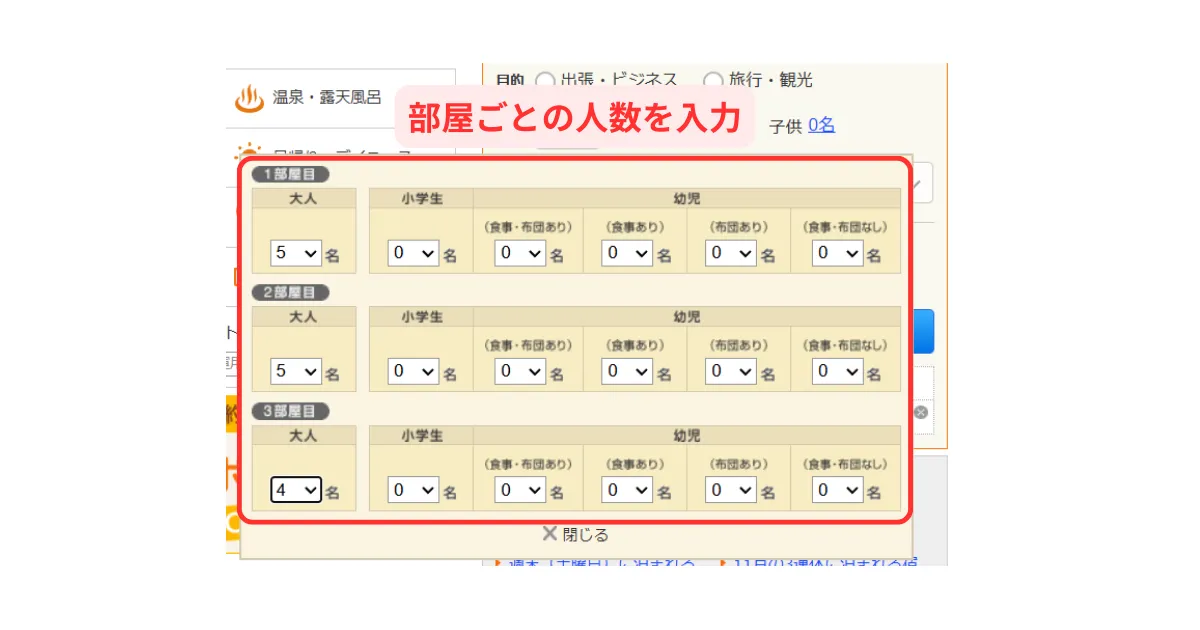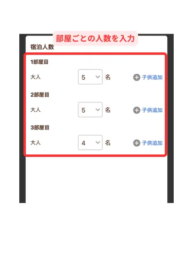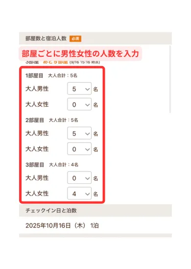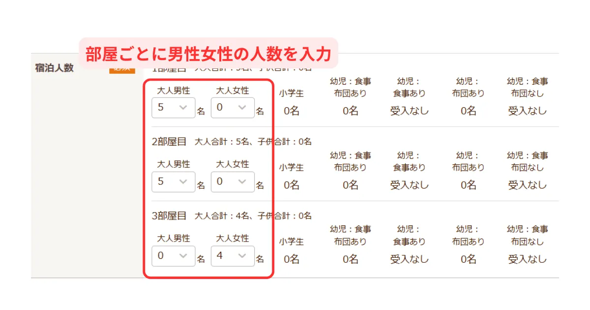 部屋ごとの人数が違う場合は Web サイトから予約しましょう。 2