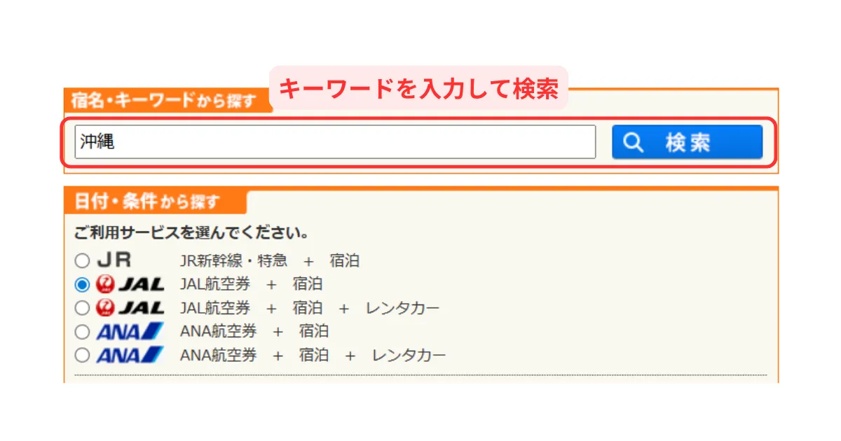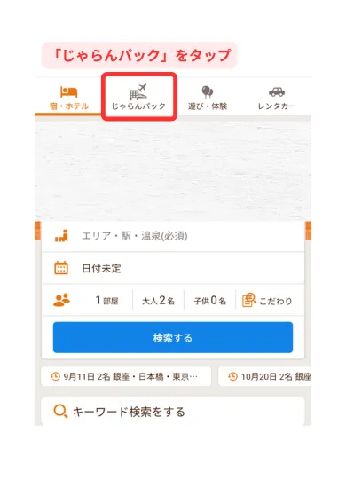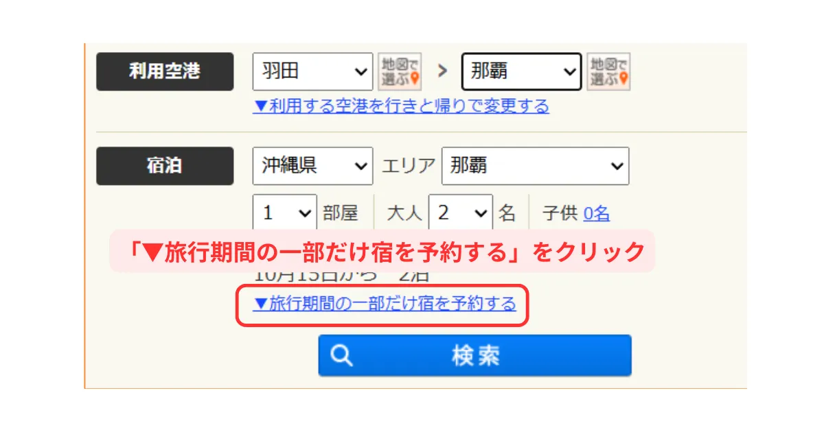 じゃらんの国内航空券パックで1泊目と2泊目を違うホテルにする方法は 2 通りあります。