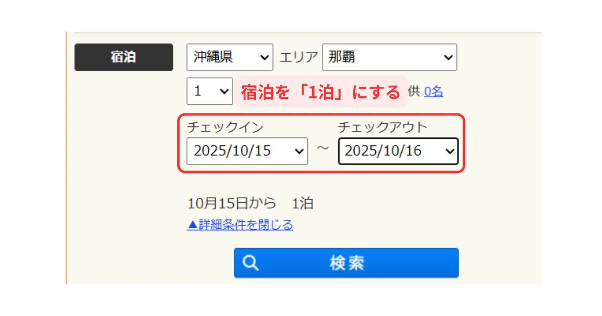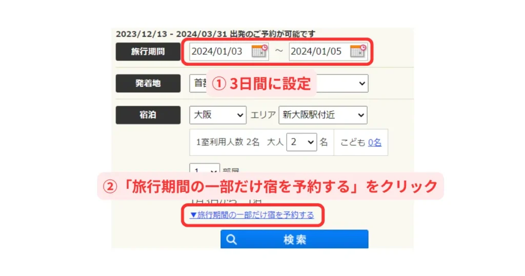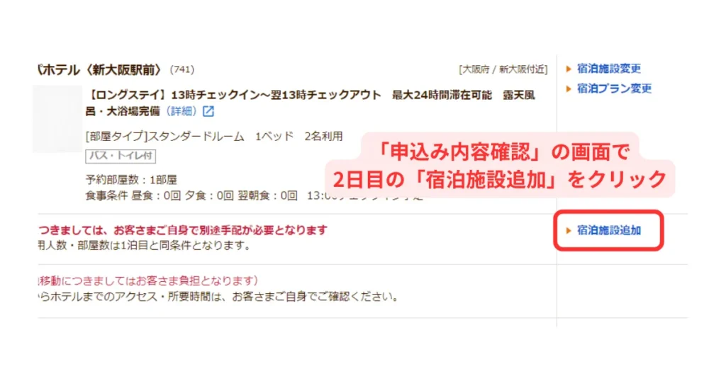 宿泊予約のみを行う際は、手続きを2回に分けて行う必要があります。