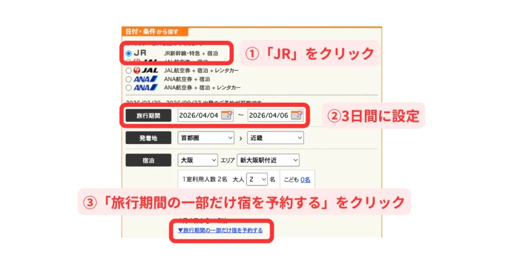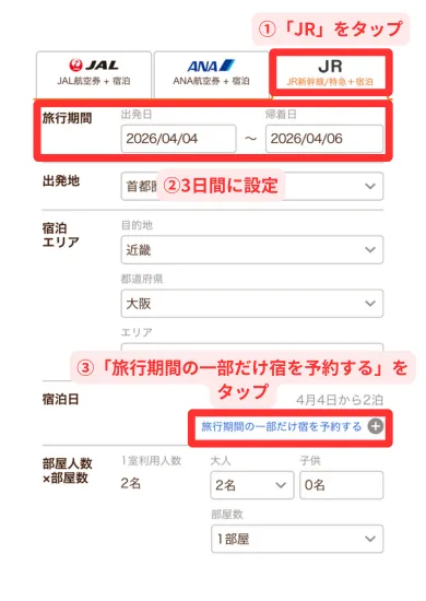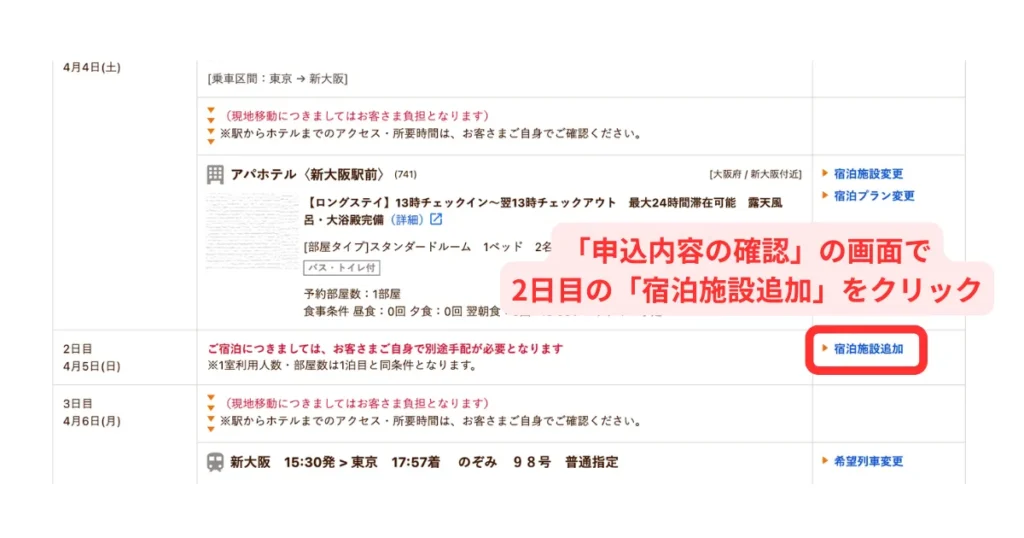 じゃらんの新幹線パックで1泊目と2泊目を違うホテルにする方法