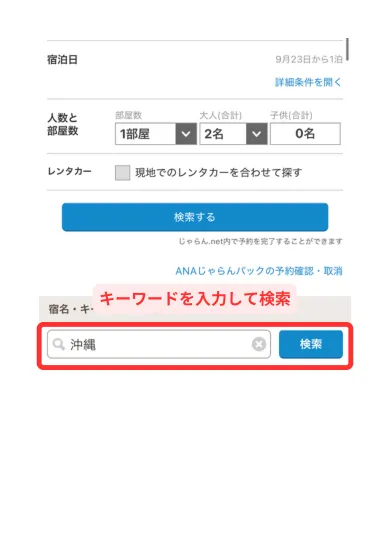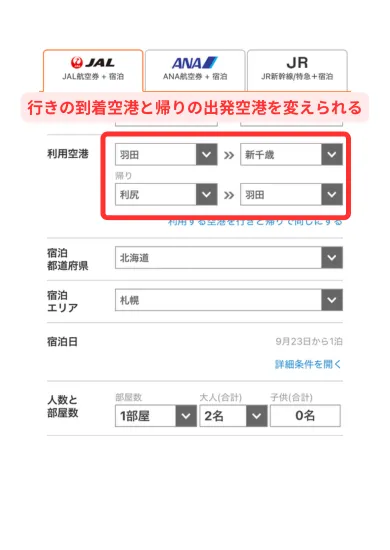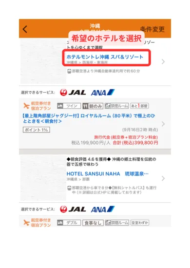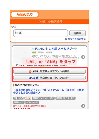 ANA・JALじゃらん飛行機パック予約スマホ画面9