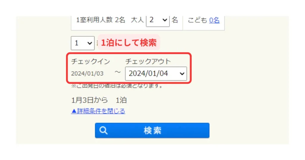 この記事では、じゃらんで 1 泊目と 2 泊目を違うホテルにする方法を紹介します。