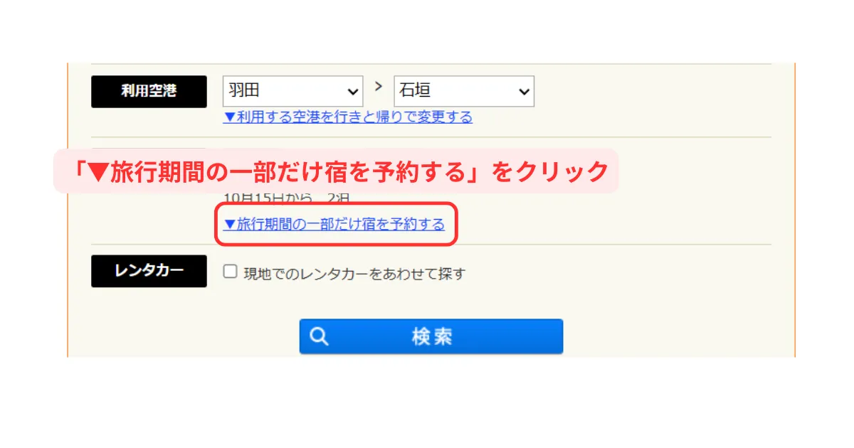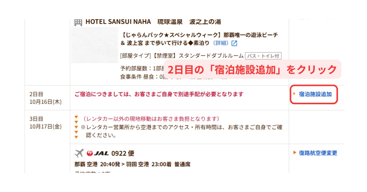 • 国内航空券パックは「宿泊施設追加」から設定可能