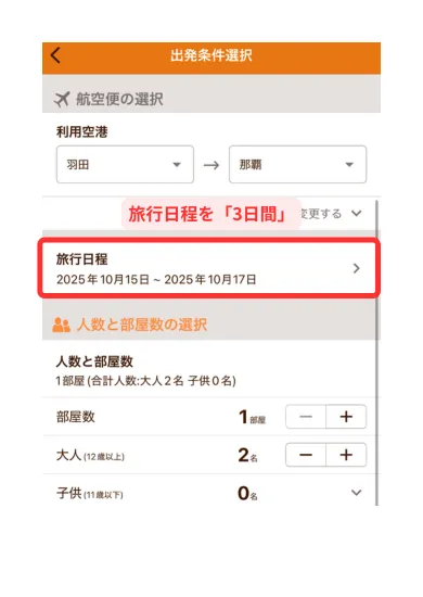 ANAじゃらんパックでは、旅行期間は2日間から最大14日間、宿泊日数は1泊から最大13泊までお選びいただけます。