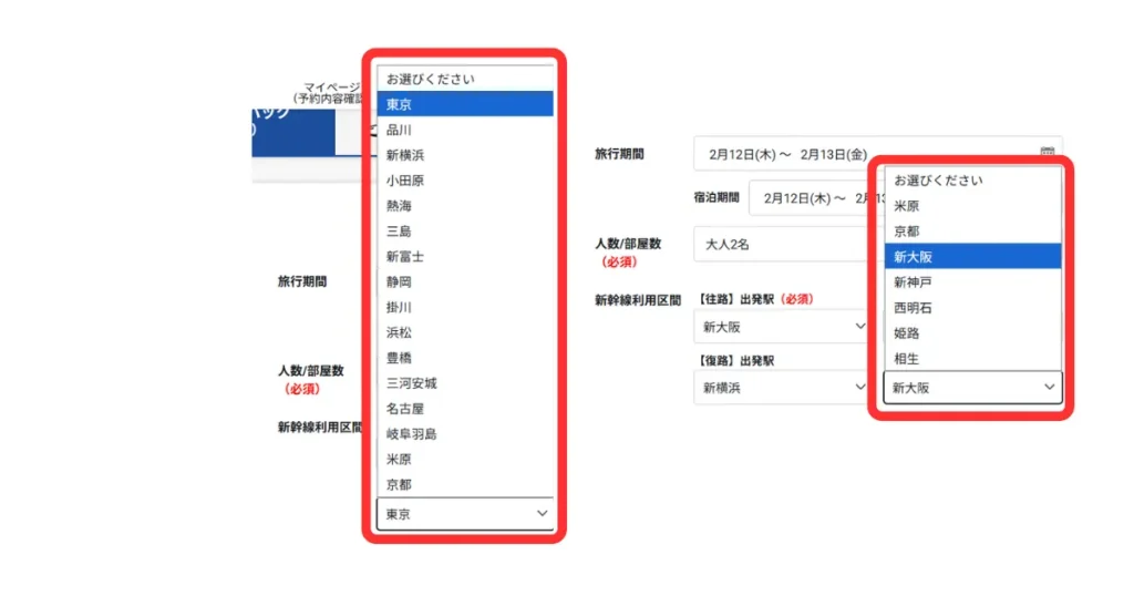 この記事では、 JR東海ツアーズで行きと帰りを違う駅にする方法を紹介します。