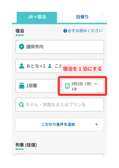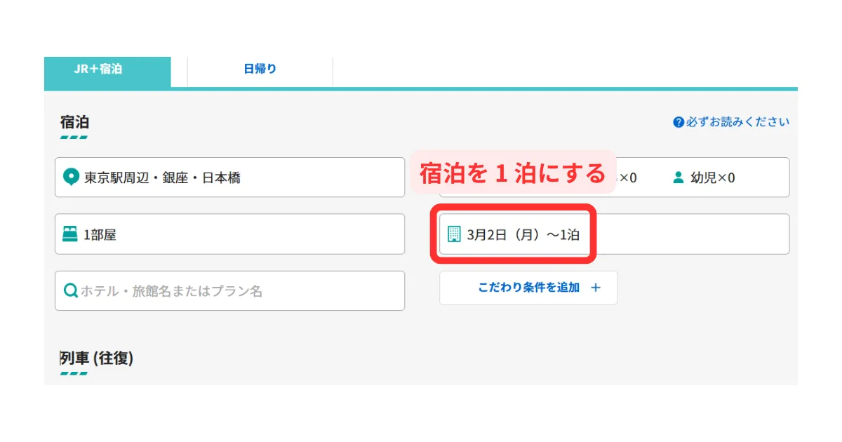 びゅうトラベルのダイナミックレールパックで1泊3日にする方法