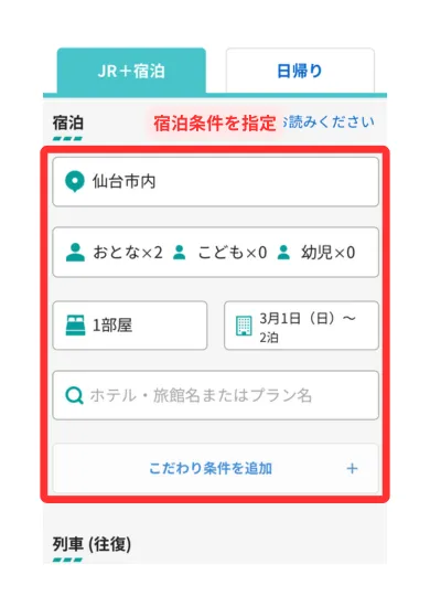 宿泊場所が仙台市の場合、