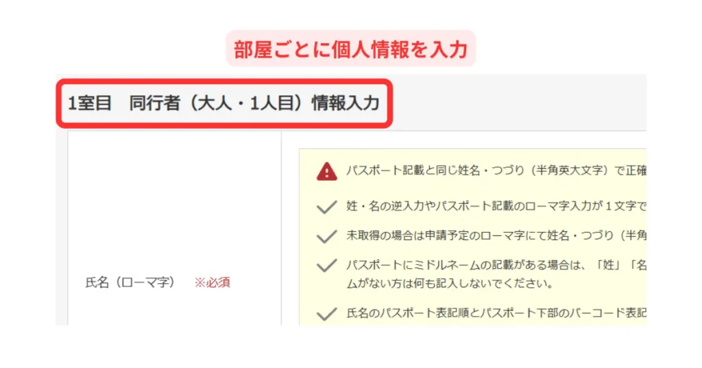 新幹線+ホテル、国内航空券+ホテル、海外航空券+ホテル、海外ホテルは、現地決済不可ですので、一部屋ごと支払うことができません。