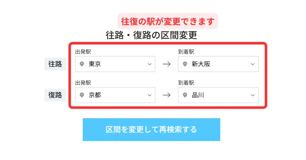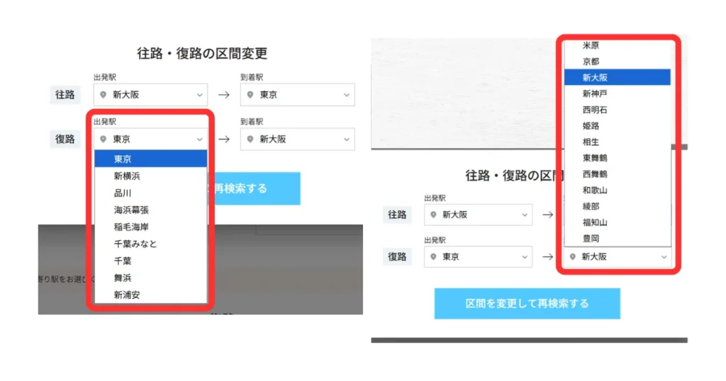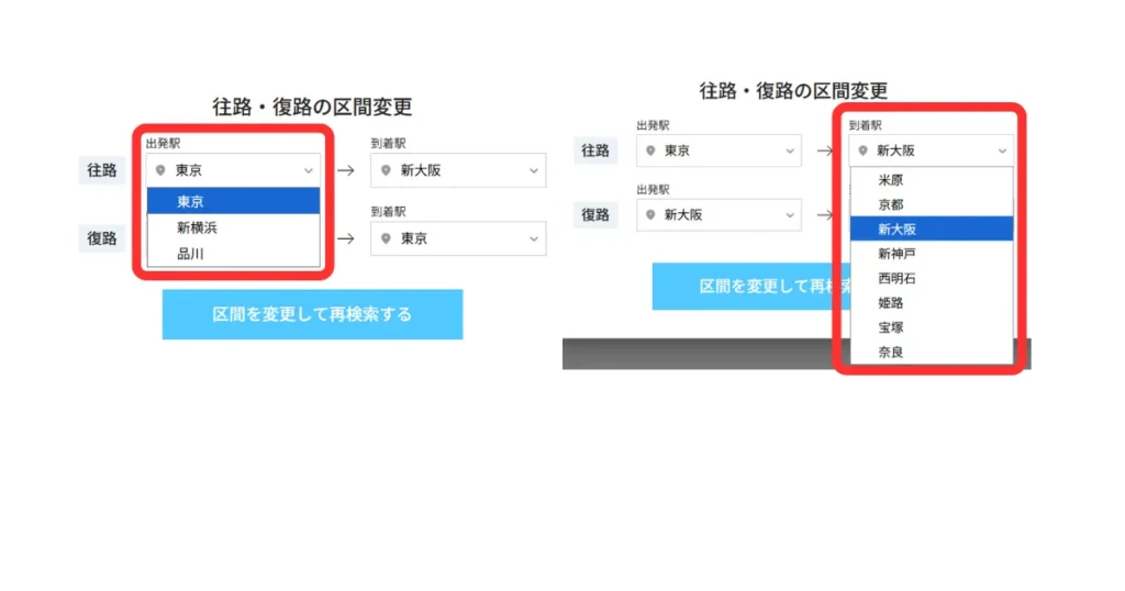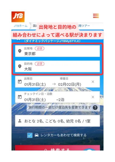 この記事では、 JTB で行きと帰りの駅や空港を変える方法を紹介します。