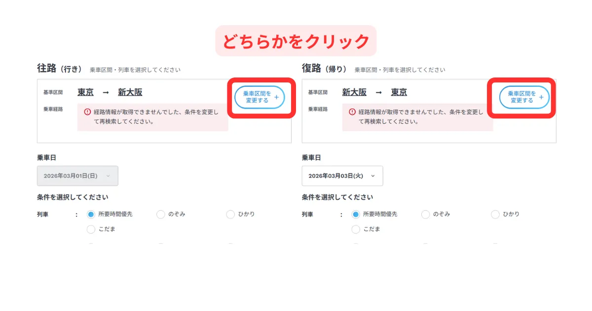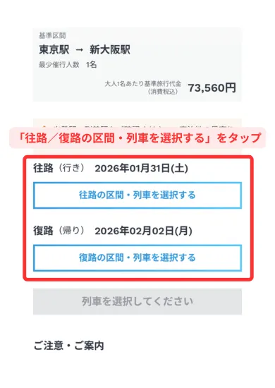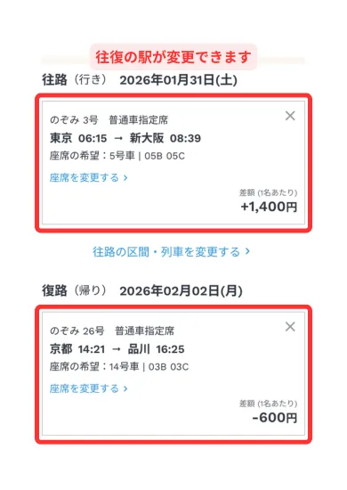 JTBの新幹線パックで行きと帰りの駅を変える方法