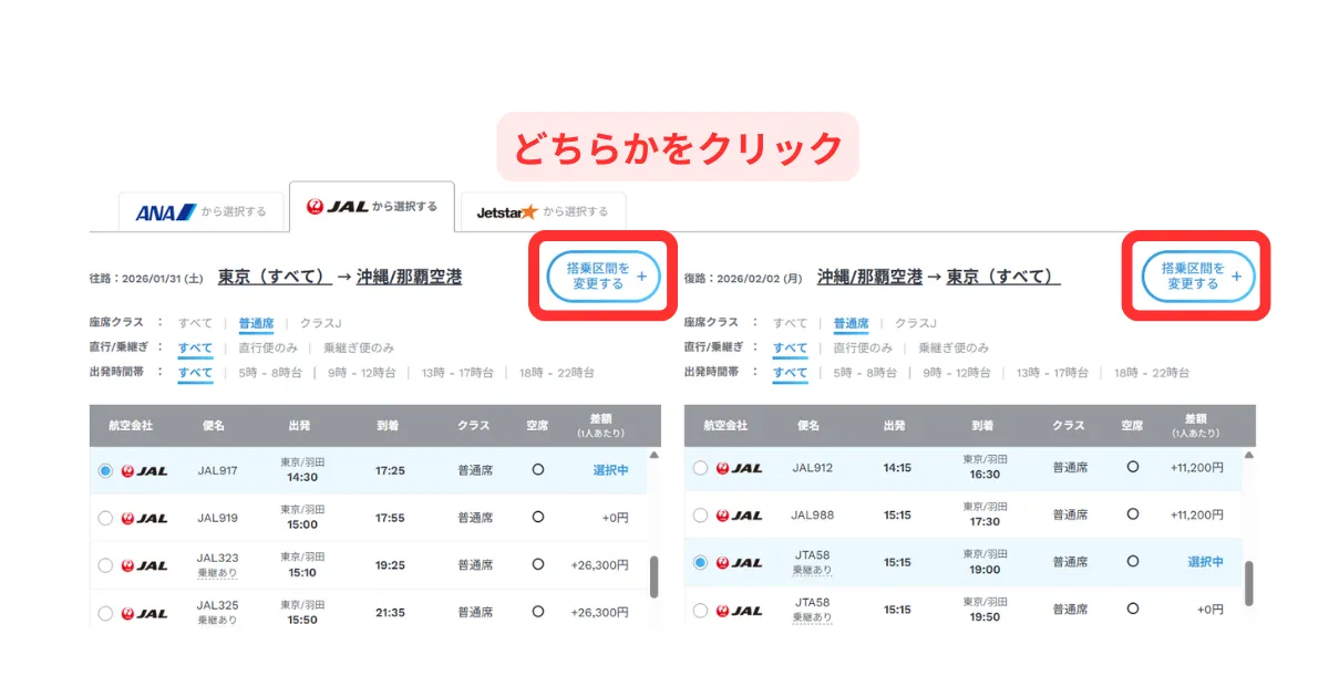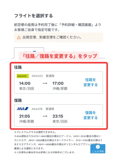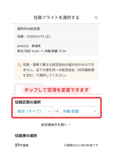 JTBの国内飛行機パックで行きと帰りの空港を変える方法