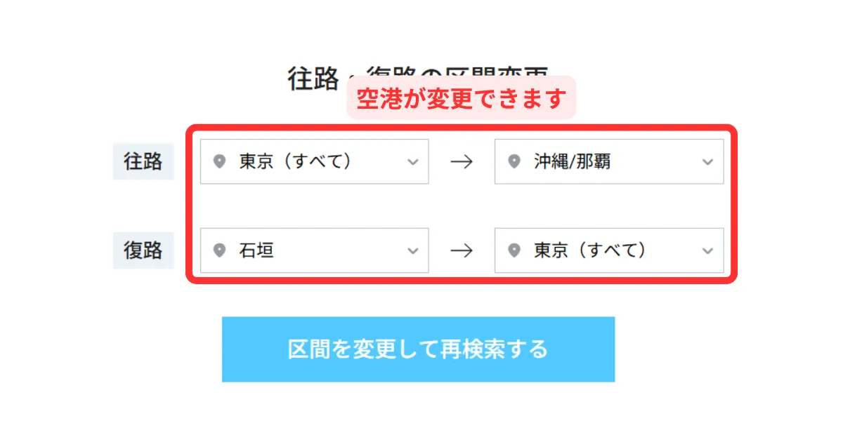 前提:行きの到着空港と帰りの出発空港は全国から選べる