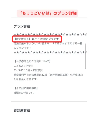 あくまで一例ですが、JTBの「ちょうどいい値」は「期間限定」のプランであることを確認しました。