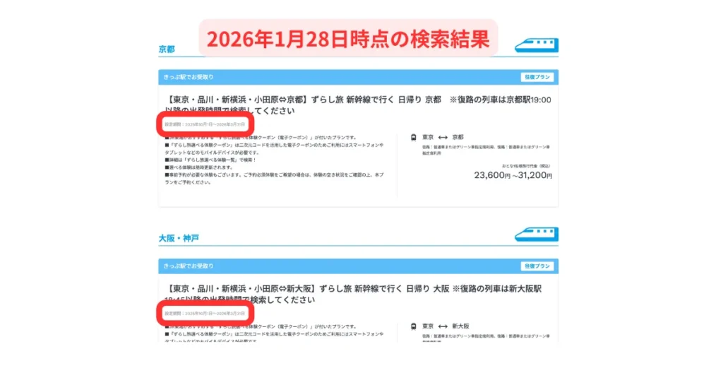新幹線ホテルパック」か「日帰りツアー」かにより予約期間が異なります。