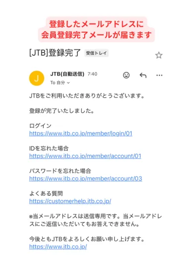 不明な場合、 【JTBトラベルメンバー】ID・パスワードを忘れてしまった場合 から「 IDの再通知」「パスワード再設定」ができます。