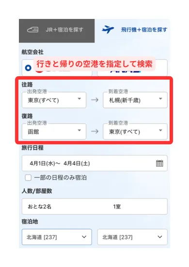 近畿日本ツーリストの国内飛行機パックで行きと帰りを違う空港にする方法