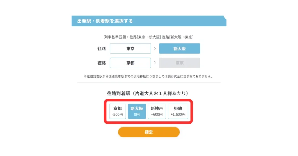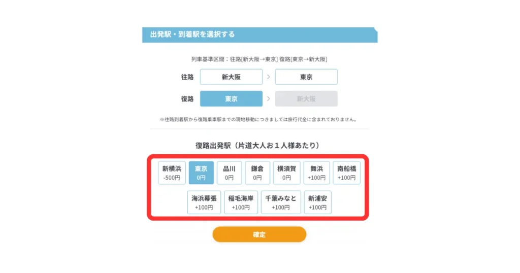 日本旅行の新幹線パックで往復を違う駅にする方法