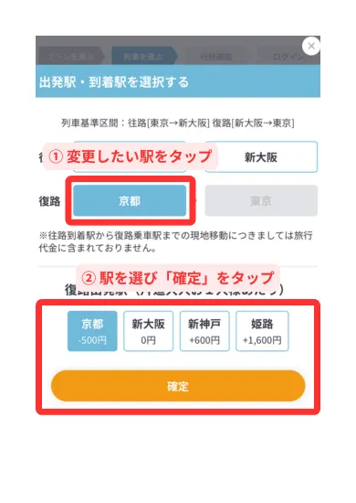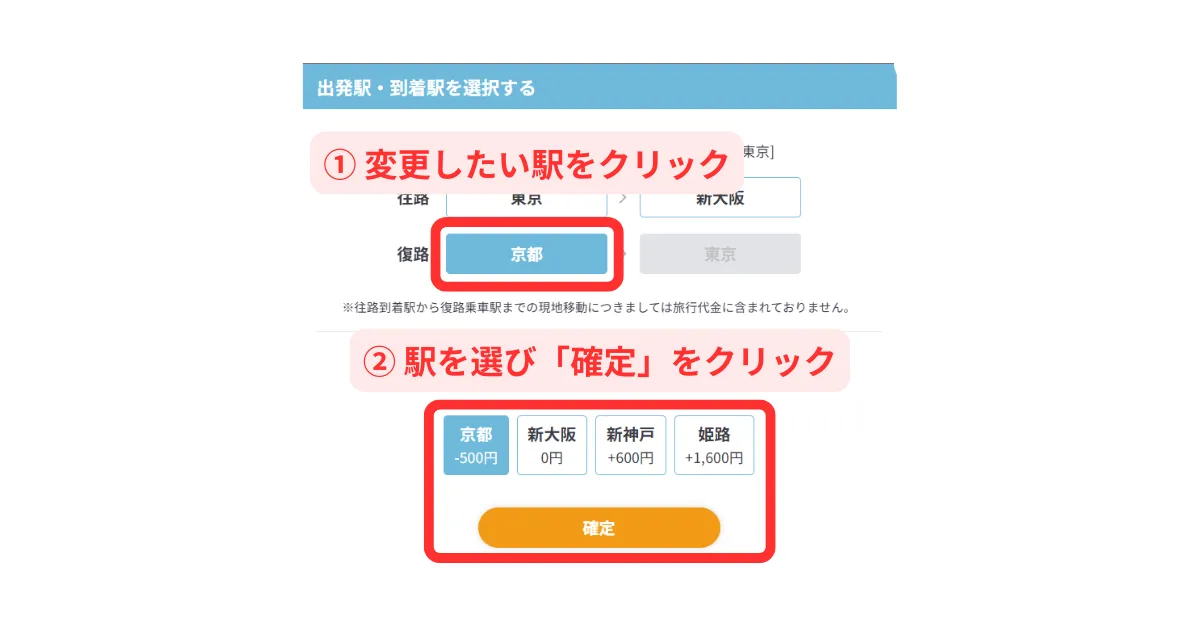 この記事では、 日本旅行で往復を違う駅にする方法を紹介します。